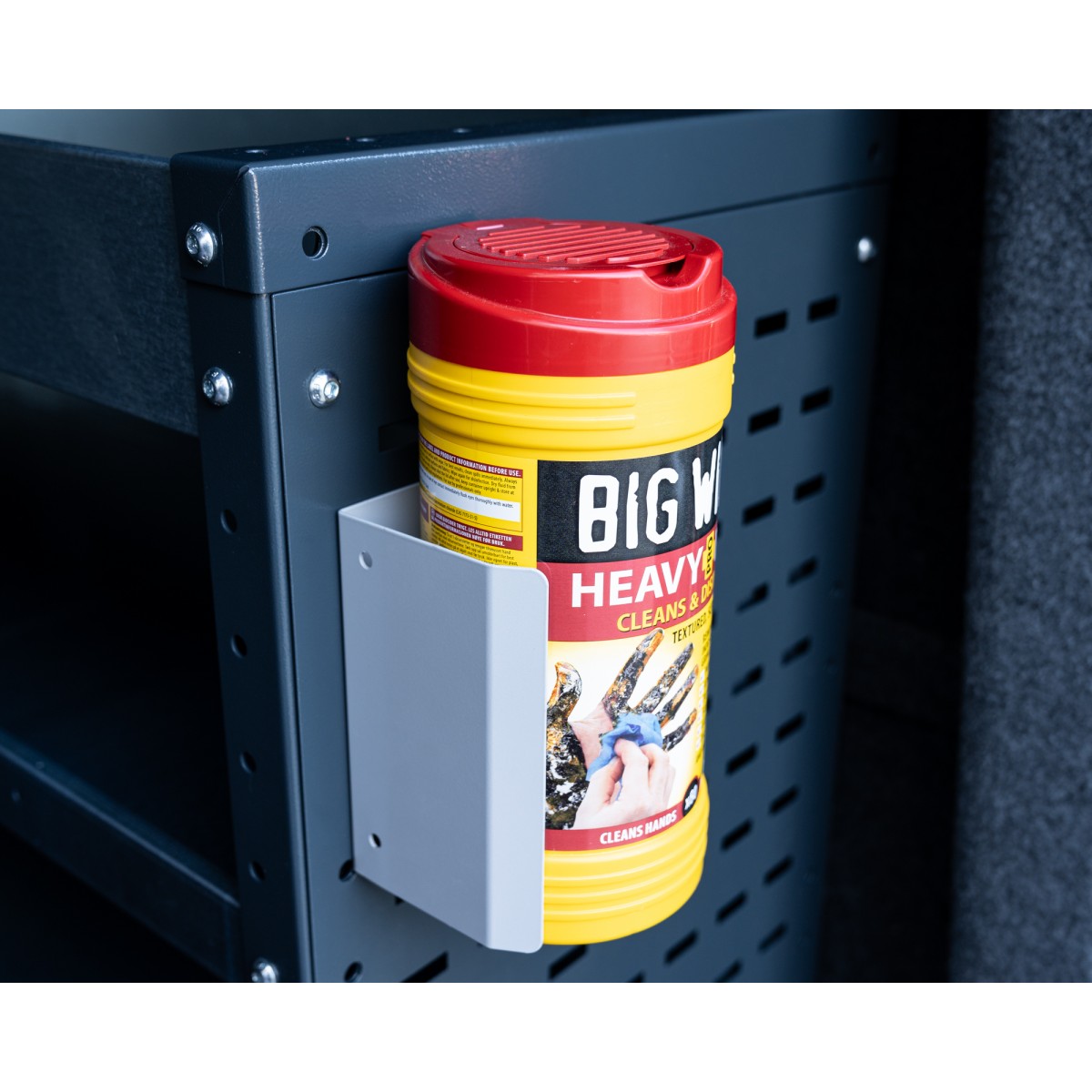 Keep your workspace clean and organised with our Wall-Mounted Universal Wipes Tub Holder, crafted from durable powder-coated sheet steel. Designed for versatility, this robust holder accommodates popular wipes brands such as Big Wipes and Wonder Wipes, making it an essential addition to your van, workshop, or garage.