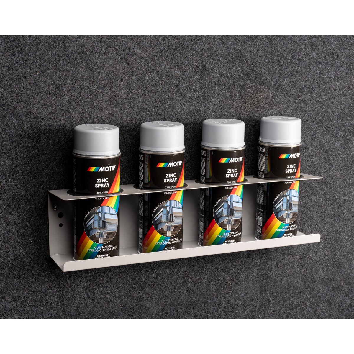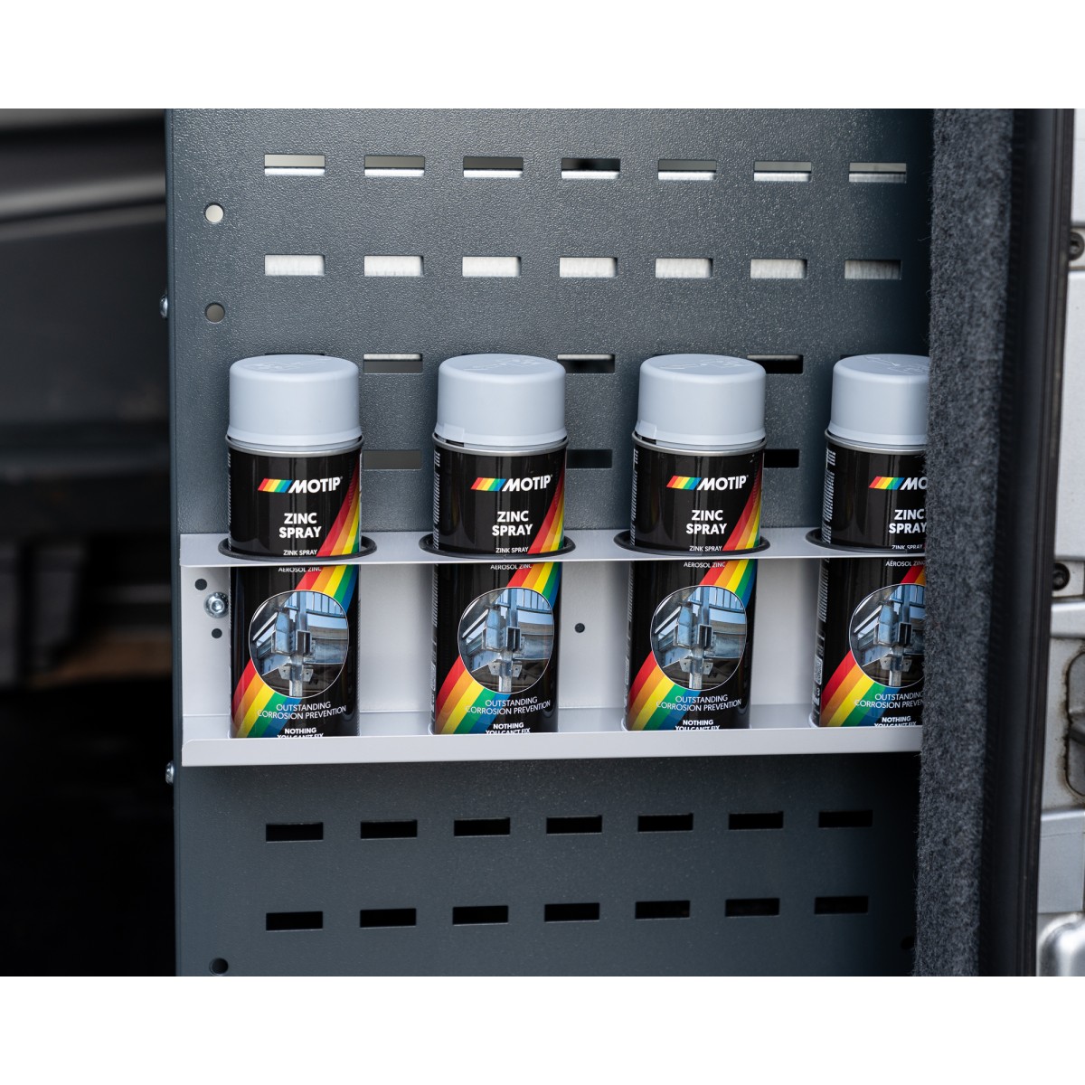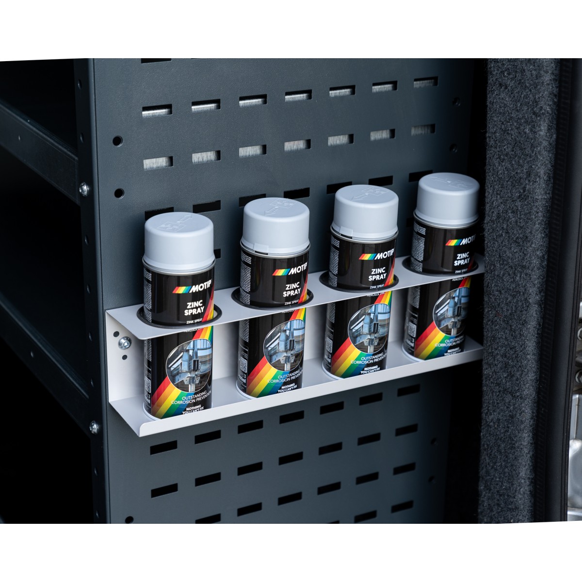 Maximise your storage efficiency with our wall mounted Aerosol Can Holder, designed to securely hold up to four cans in a variety of applications, such as vans, workshops or garages. Crafted from durable steel and finished with a matte silver powder coating, this hard-wearing holder, not only enhances organisation but also adds a touch of modern style to your space.