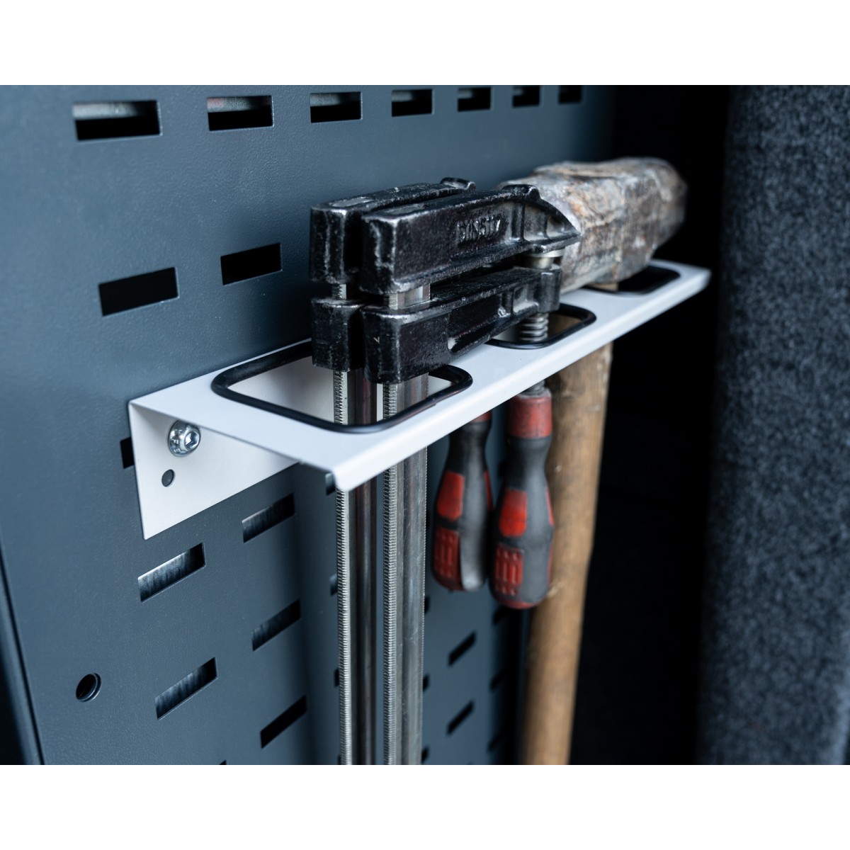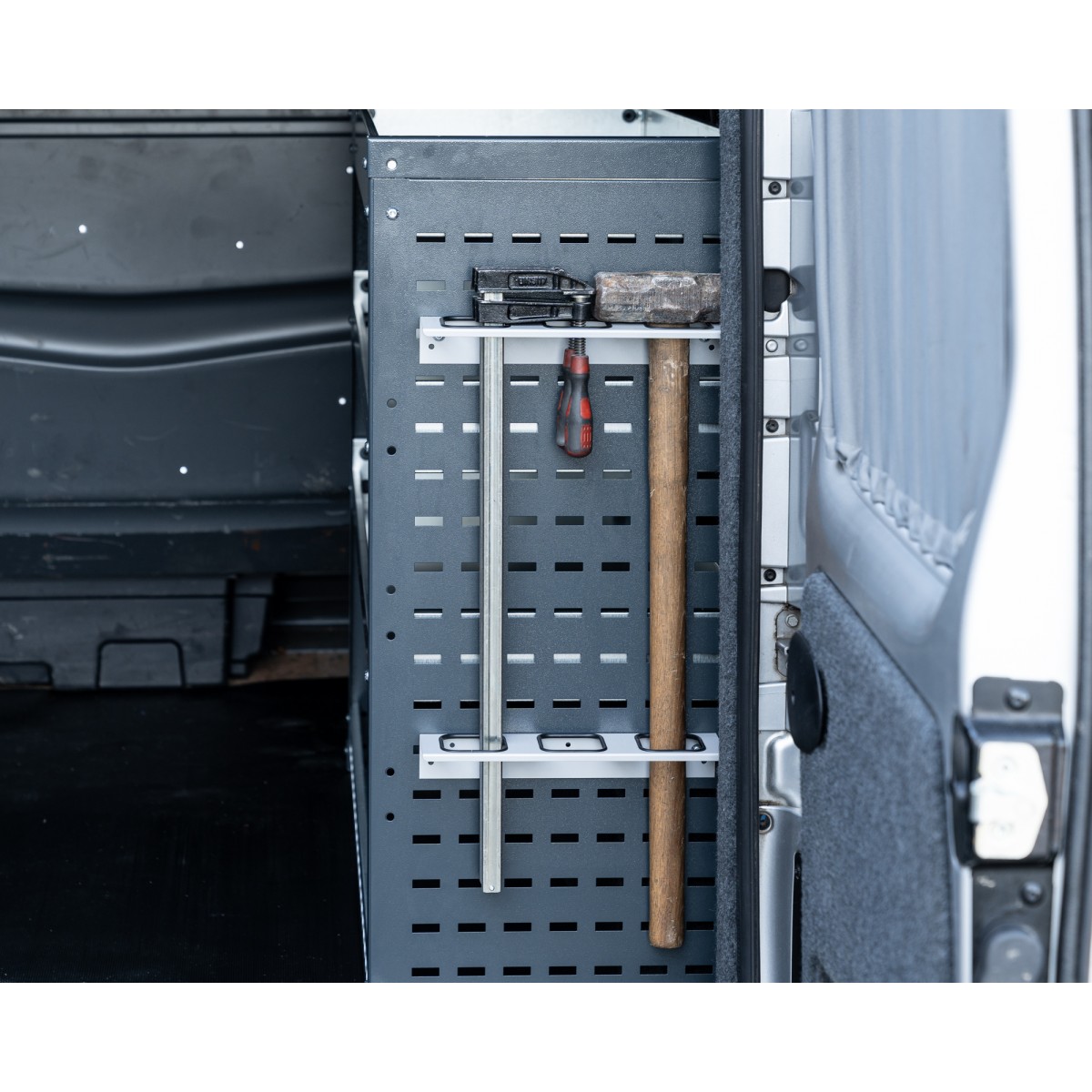 Perfect for use in vans, it easily attaches to racking, sidelinings, or rear doors, making it ideal for mobile workspaces. Its versatile design also suits garages and workshops, offering a practical solution to keep your essential tools organised and easily accessible.