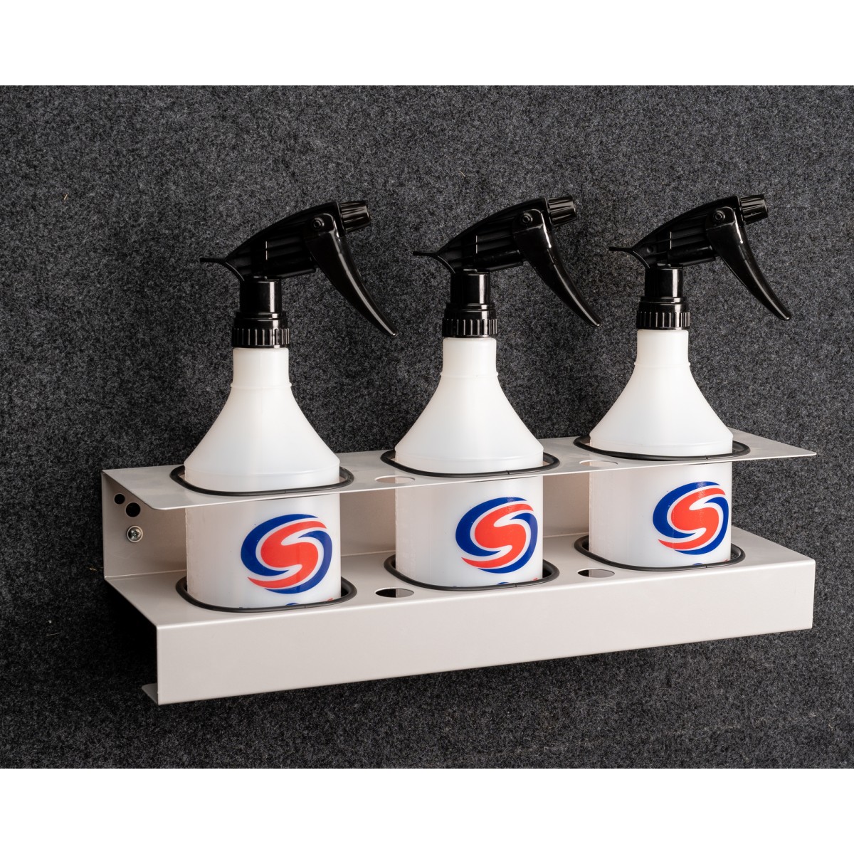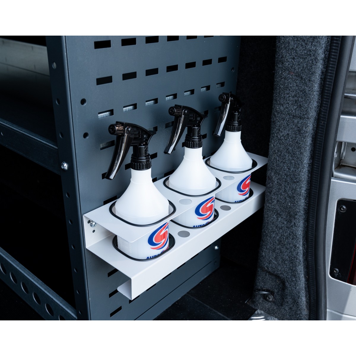Ideal for mounting on walls in workshops and garages, or on racking and rear doors in vans, it offers versatile storage for tradespeople, detailers, and hobbyists alike. Whether you're on the go or working in your shop, this holder ensures your spray bottles are always within easy reach, making it a practical addition to any setup.