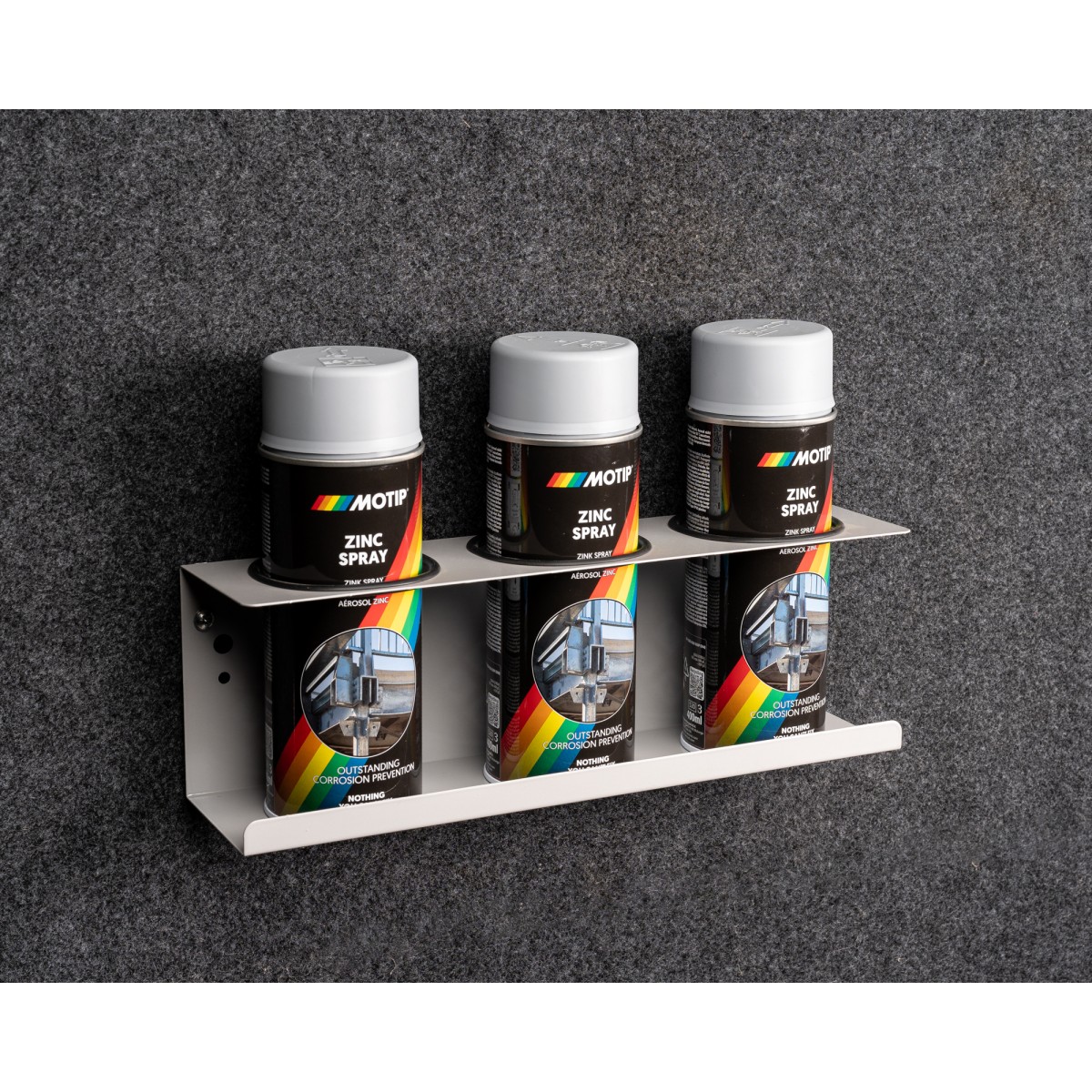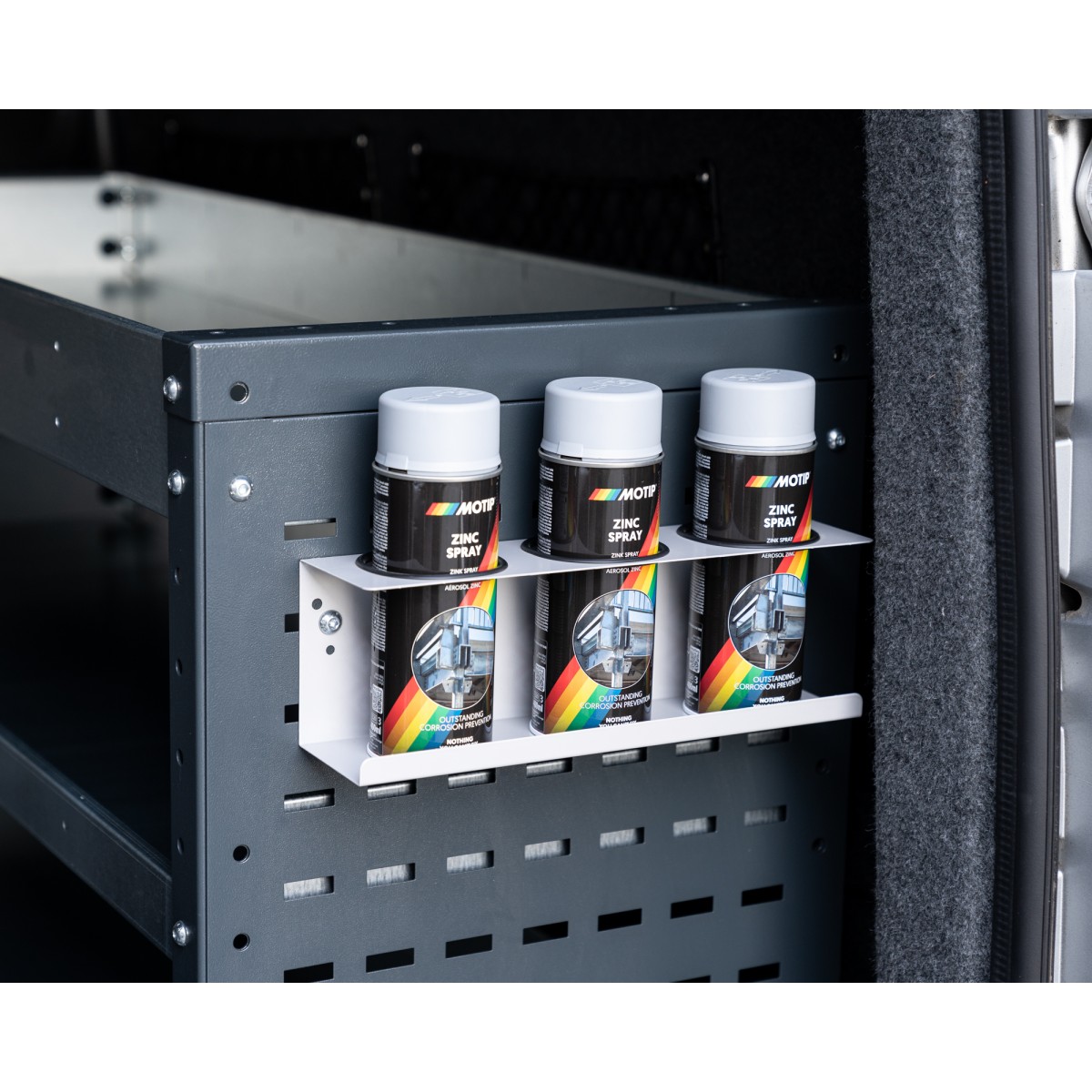 Maximise your storage efficiency with our wall mounted Aerosol Can Holder, designed to securely hold up to three cans in a variety of applications, such as vans, workshops or garages. Crafted from durable steel and finished with a matte silver powder coating, this hard-wearing holder, not only enhances organisation but also adds a touch of modern style to your space.