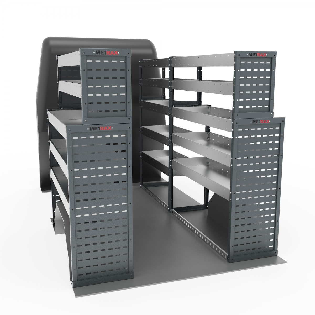 Full set of van shelving, comprising the following units: