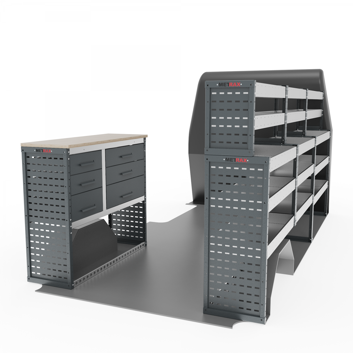 Full set of van shelving, comprising the following units: